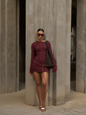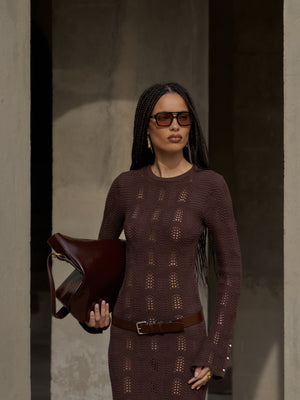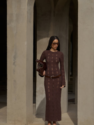 - Long sleeved scallop edge knitted maxi dress