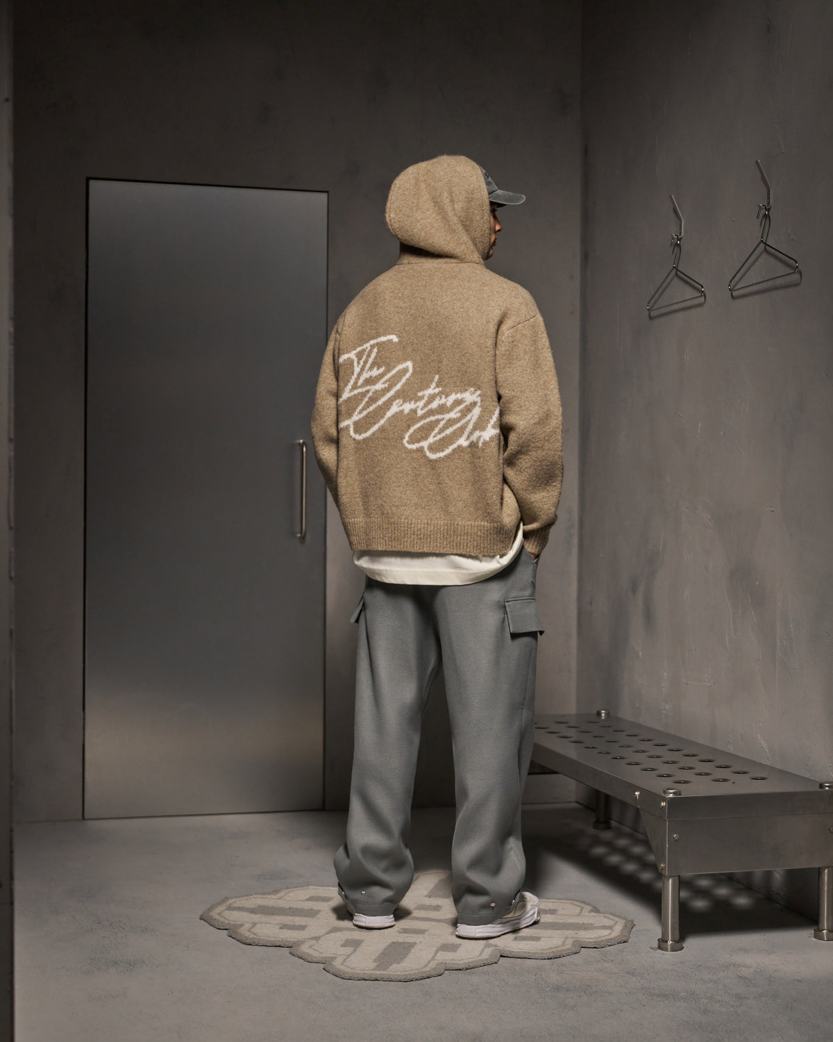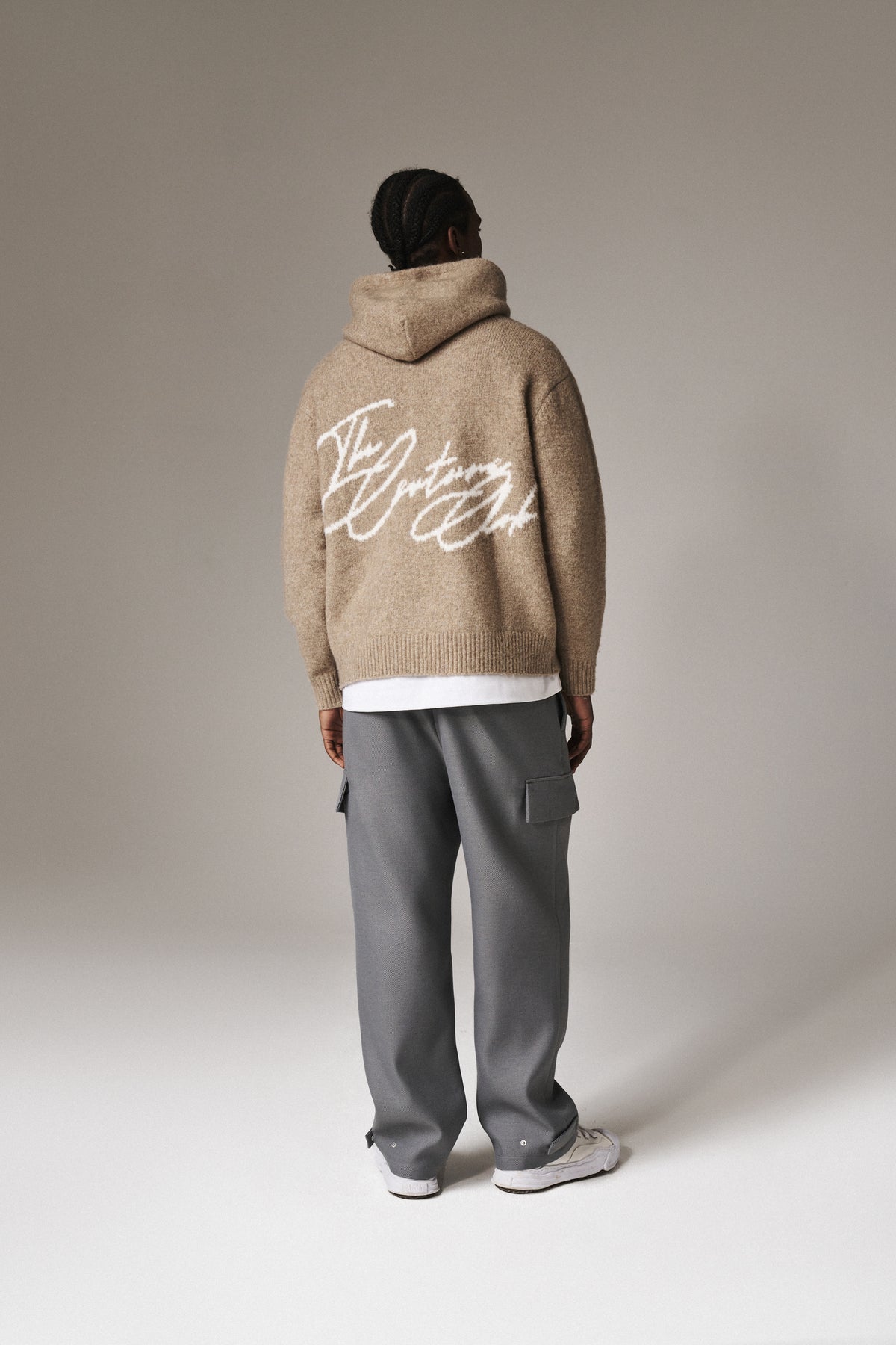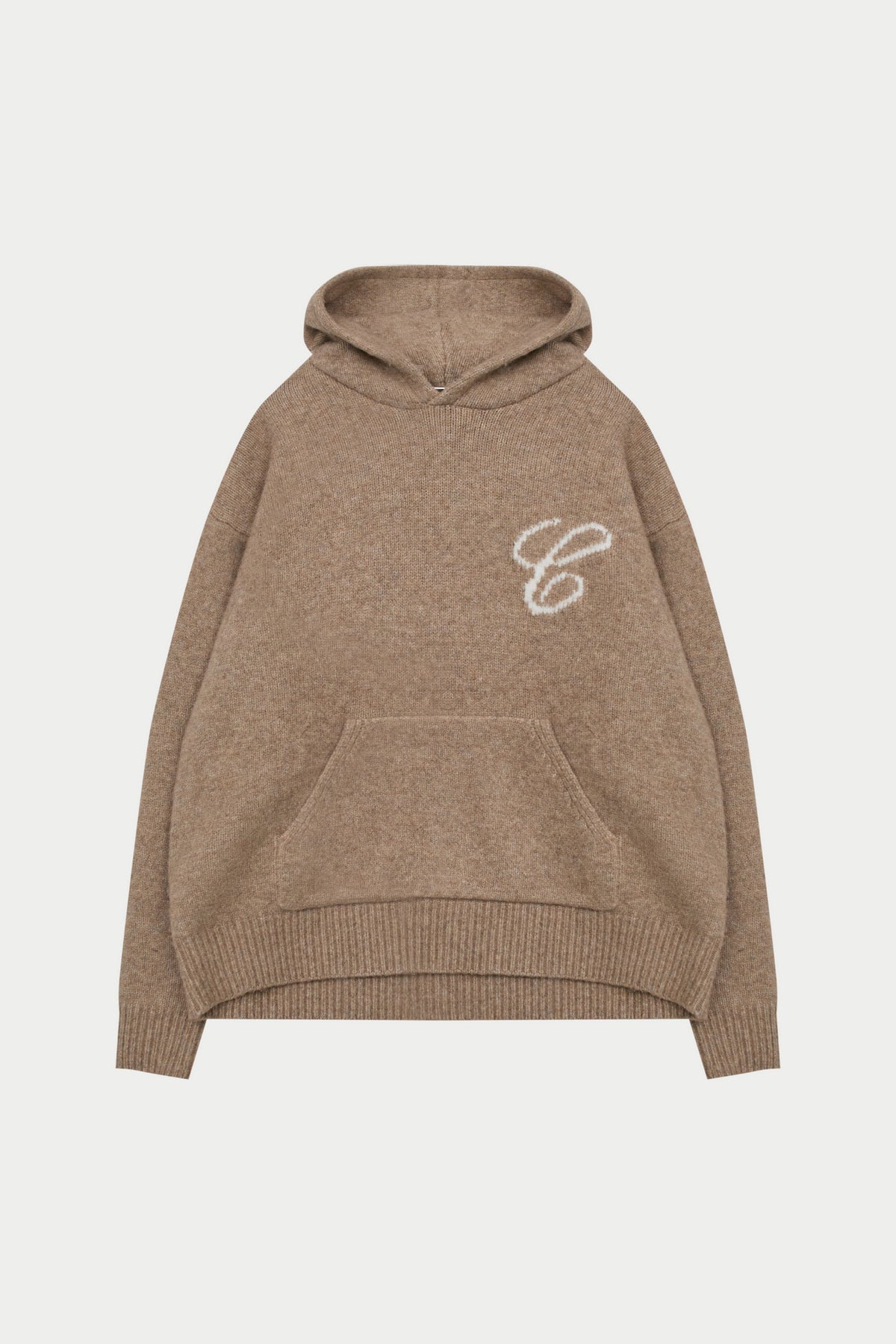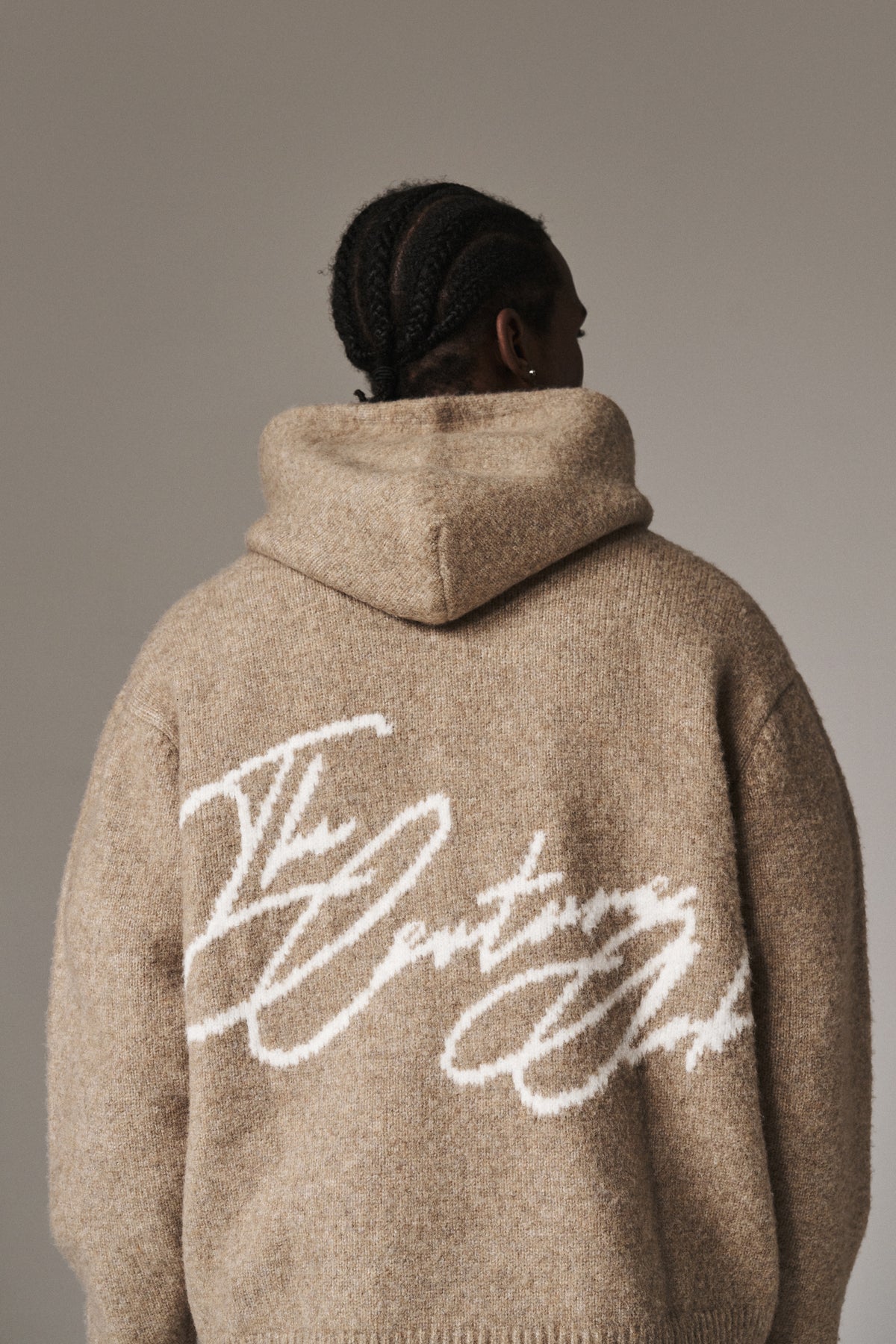 SCRIPT LOGO GRAPHIC KNITTED HOODIE - BEIGE