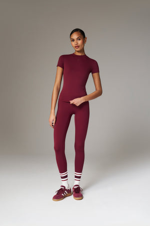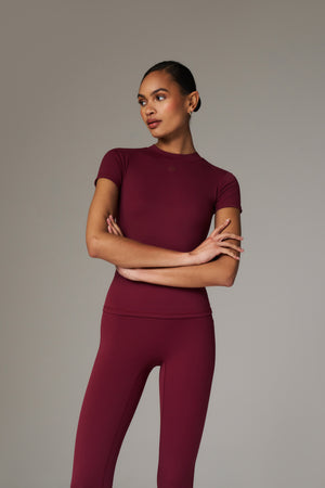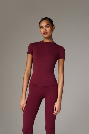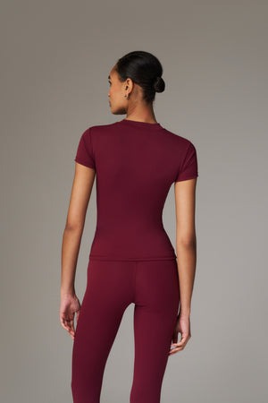 SCULPTING STRETCH EMBLEM BABY TEE - BURGUNDY