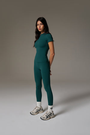 SCULPTING STRETCH EMBLEM BABY TEE - FOREST GREEN