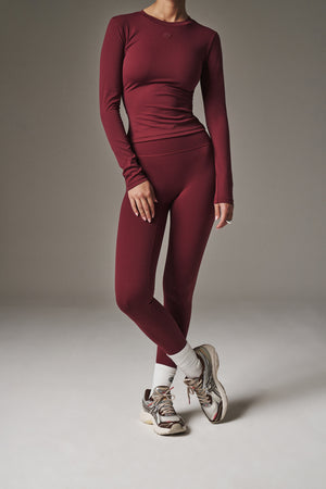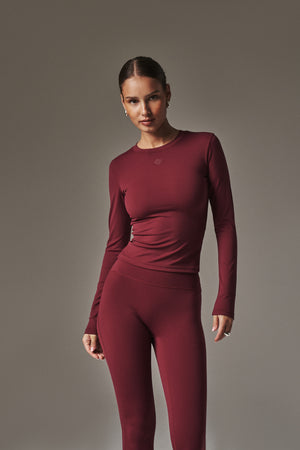 SCULPTING STRETCH LONG SLEEVE TOP - BURGUNDY