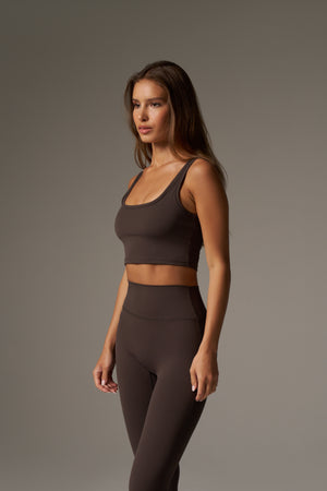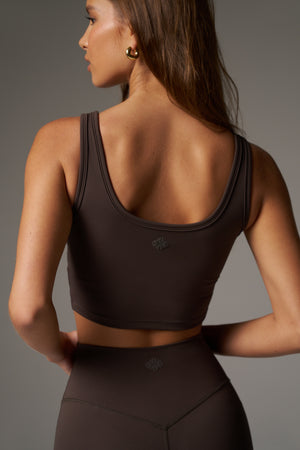 SCULPTING STRETCH EMBLEM SPORTS BRA - CHOCOLATE