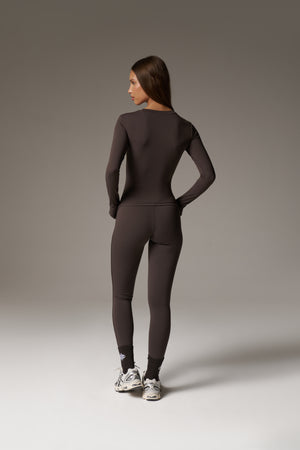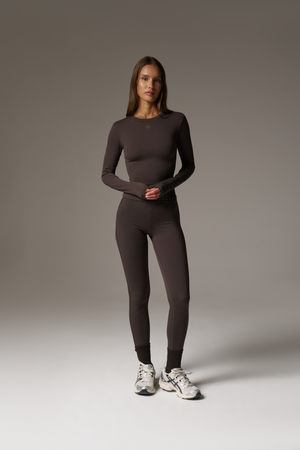 SCULPTING STRETCH LONG SLEEVE TOP - CHOCOLATE