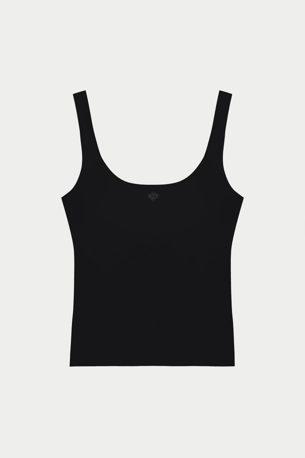 SCULPTING STRETCH SCOOP NECK SPORTS TOP - BLACK