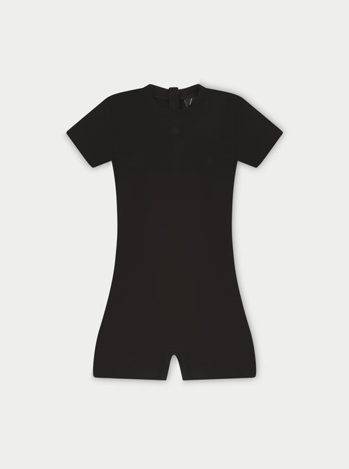 SOFT TOUCH SHORT SLEEVE FITTED UNITARD - BLACK