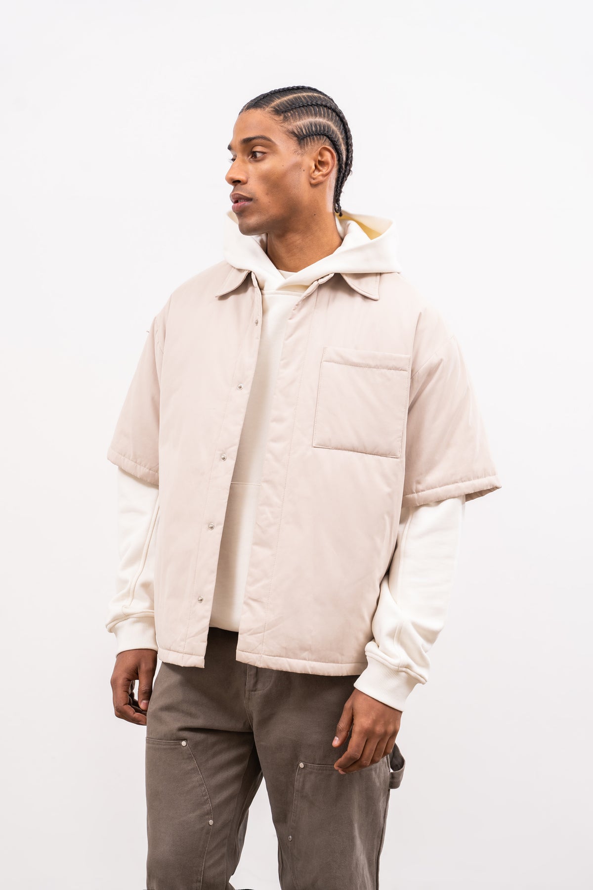 SHORT SLEEVE PADDED SHIRT - OFF WHITE