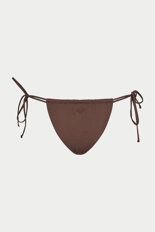 SIDE TIE EMBLEM BIKINI BOTTOMS - CHOCOLATE