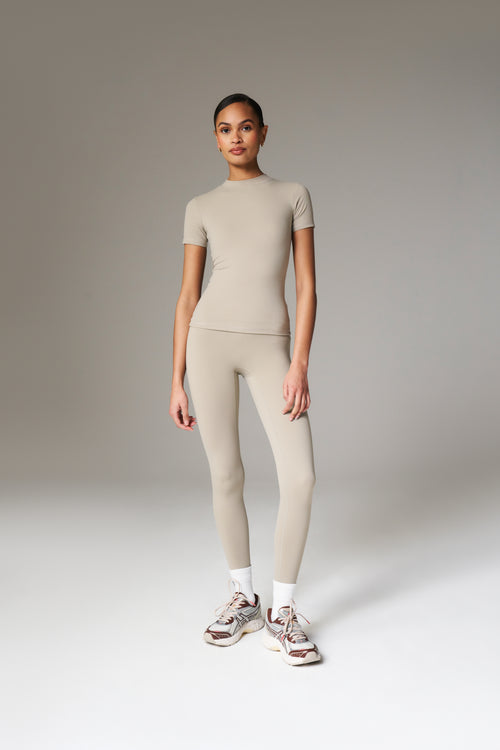 SCULPTING STRETCH EMBLEM BABY TEE - COCOA