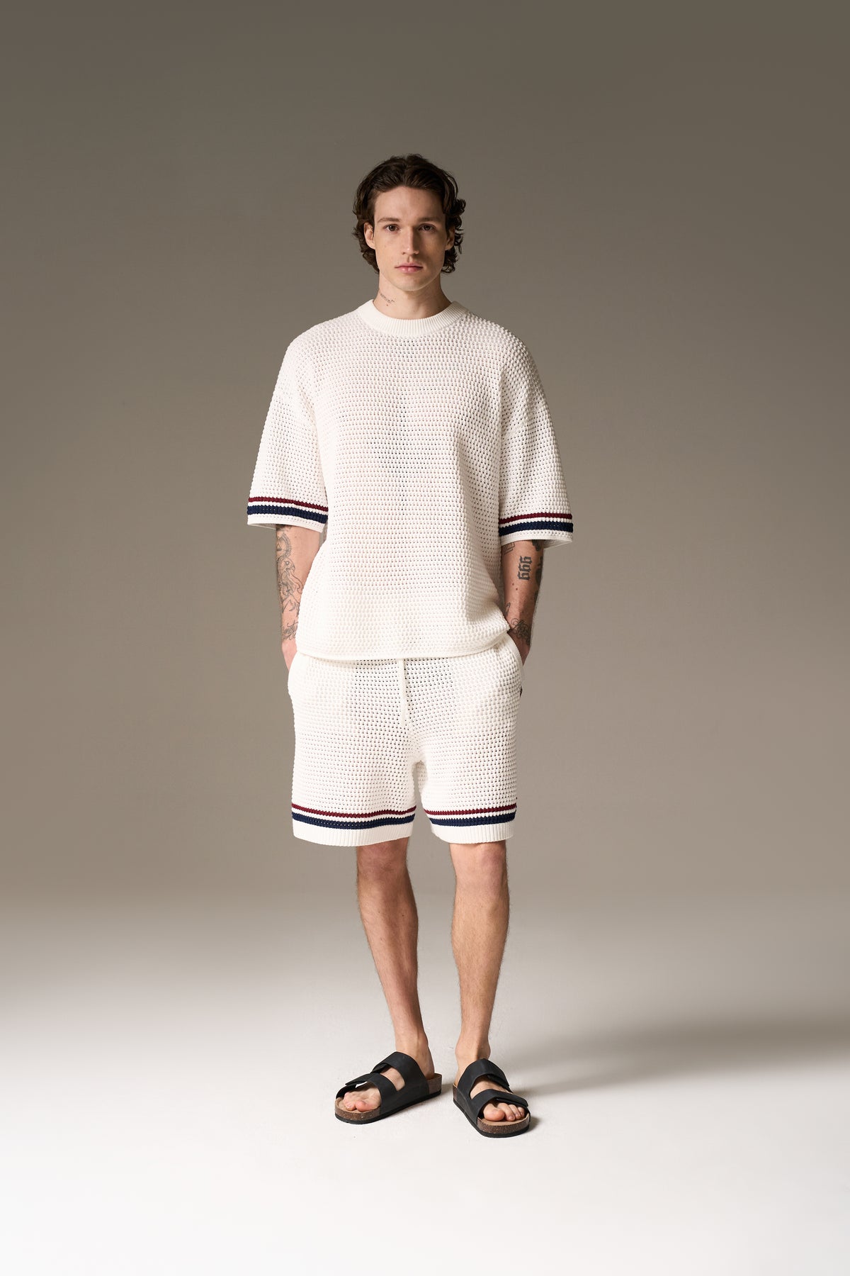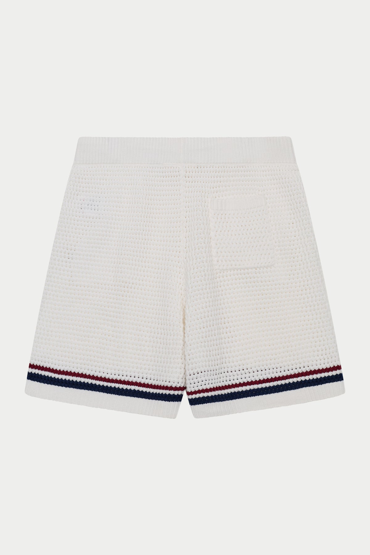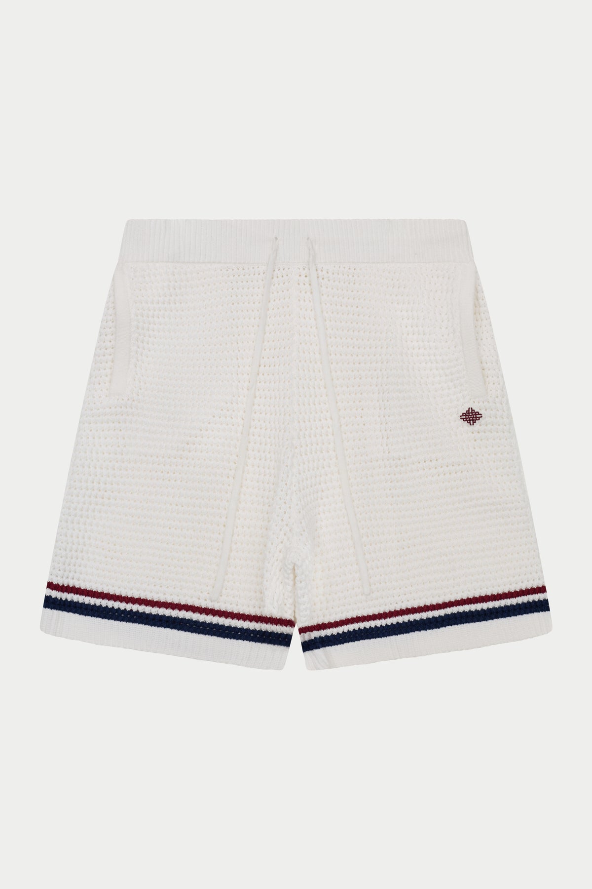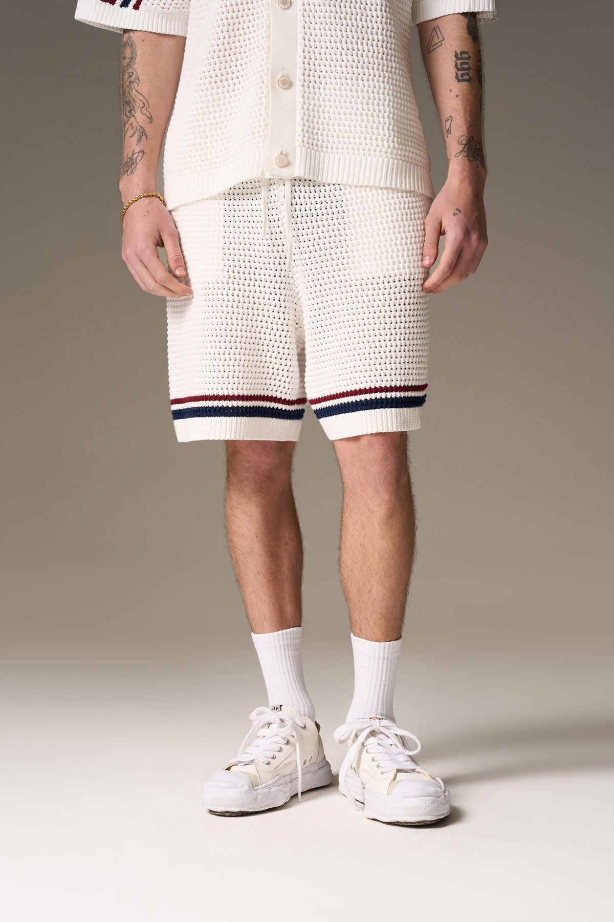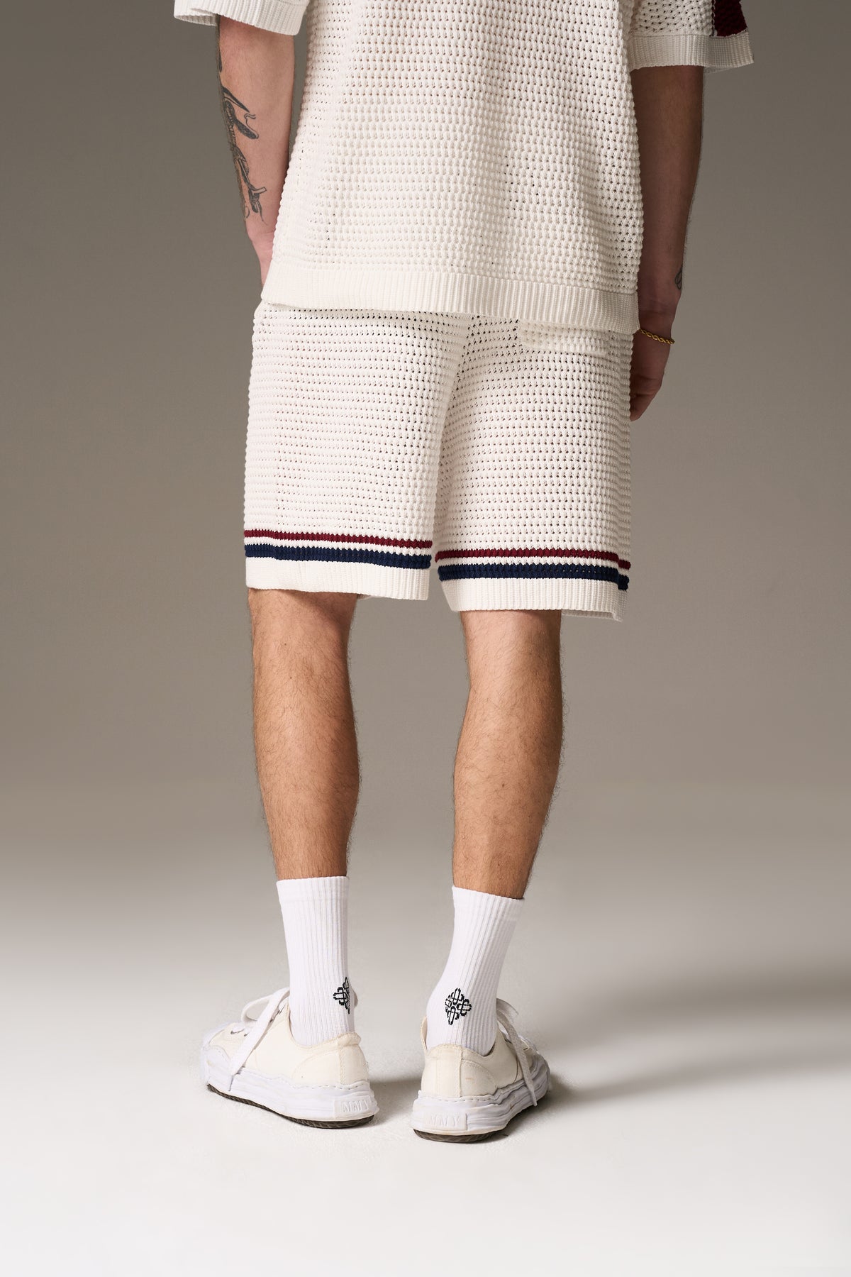 STRIPE CROCHET KNIT SHORTS - BURGUNDY