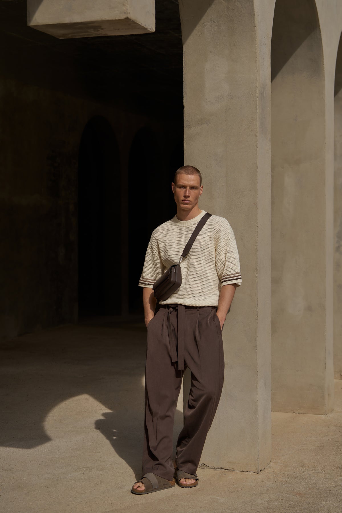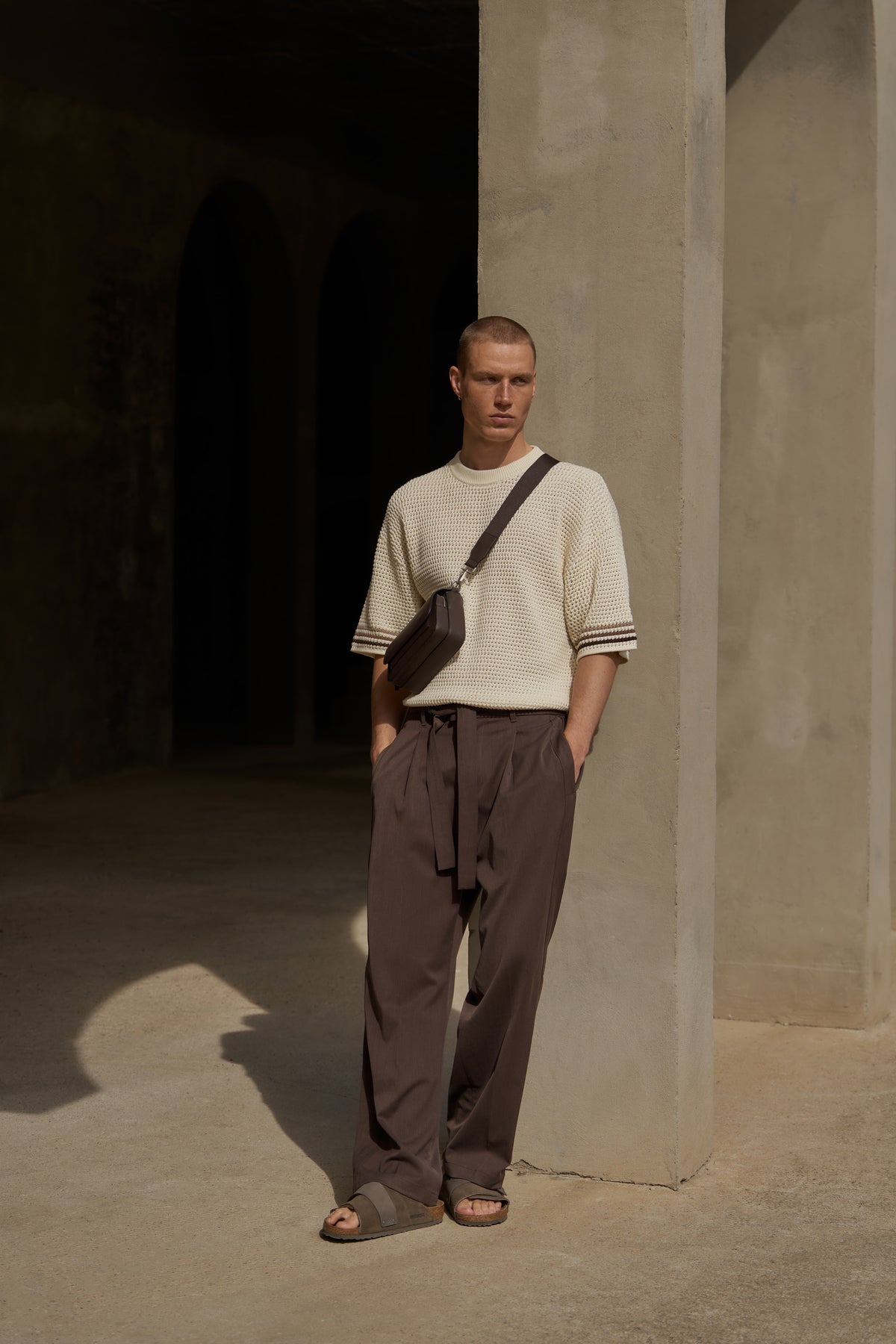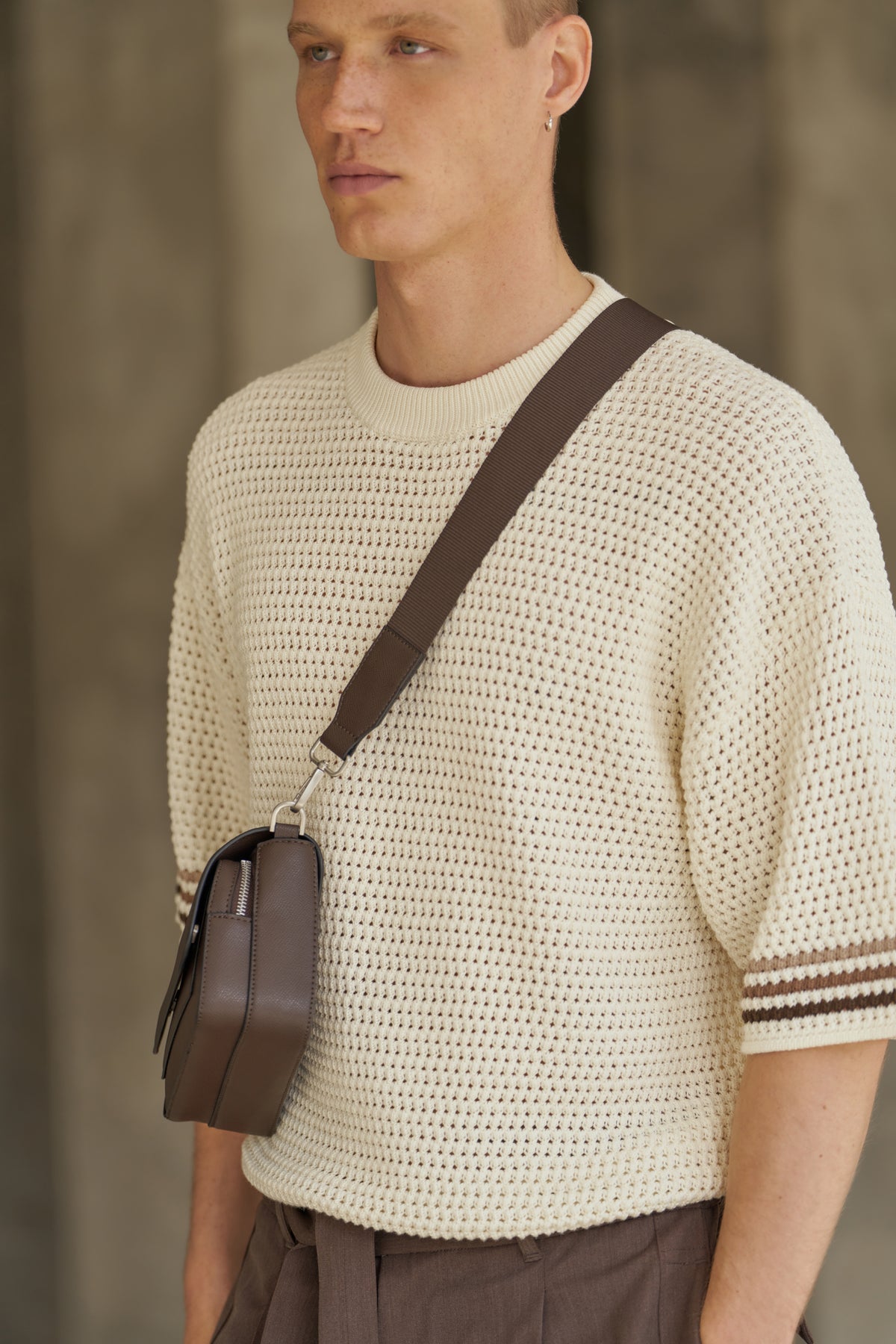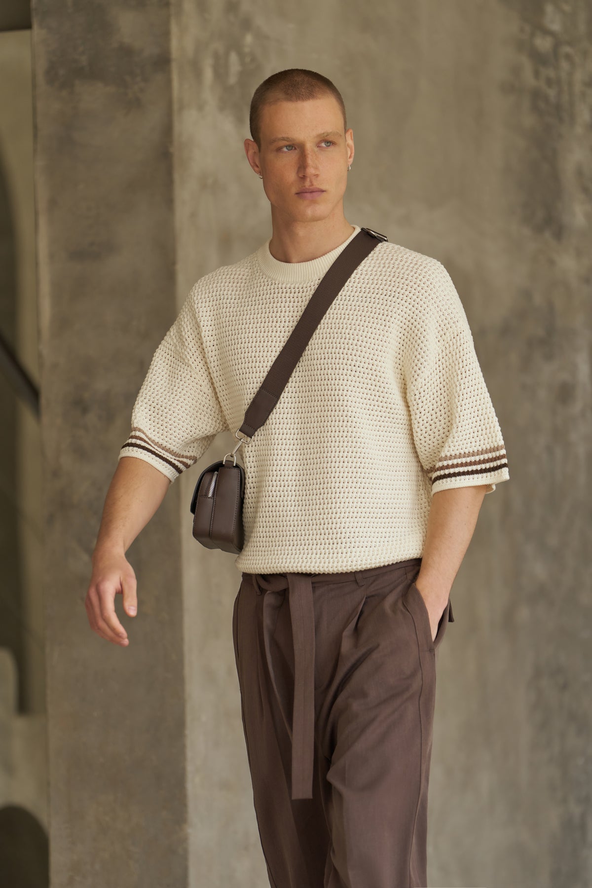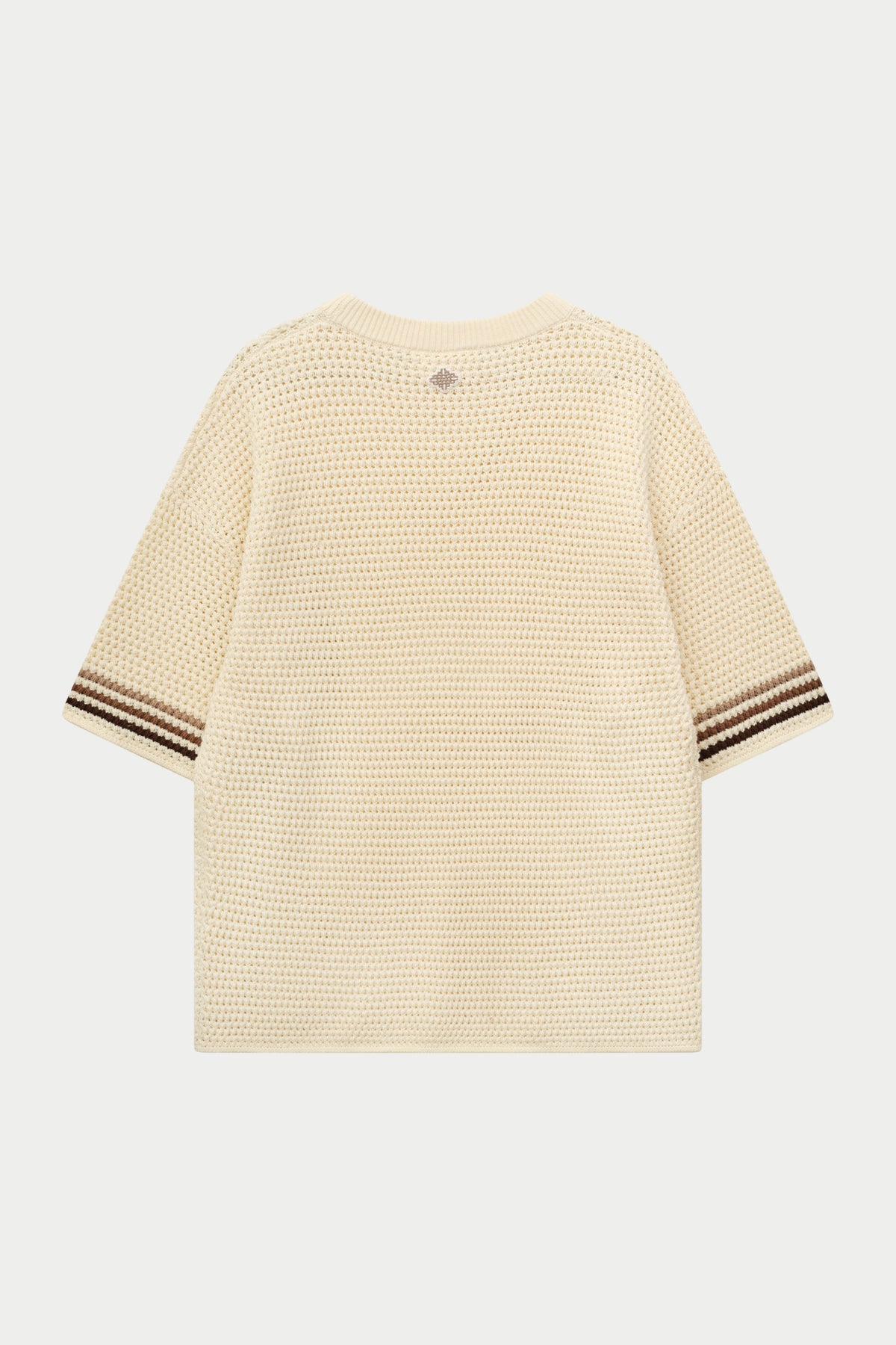 STRIPE CROCHET KNIT T-SHIRT - OFF WHITE