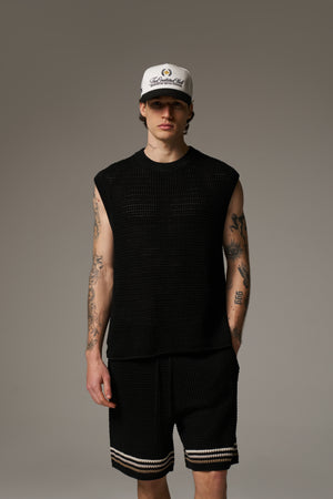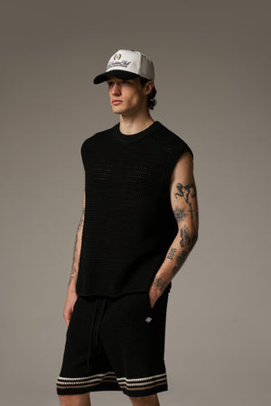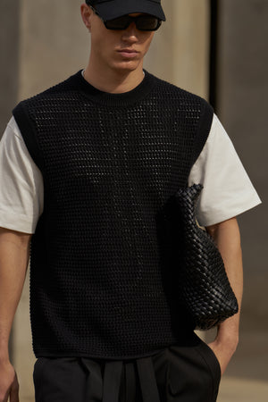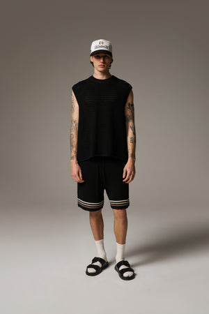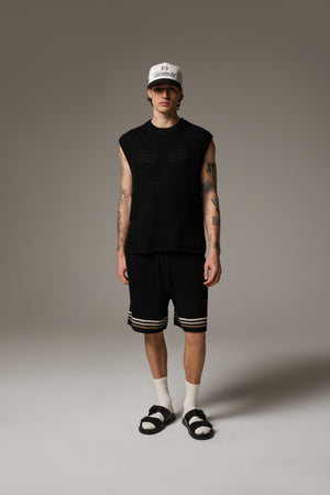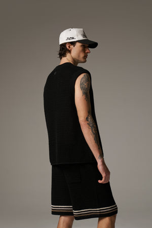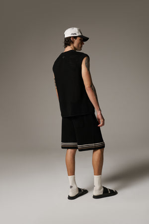 - Embroidery emblem badge sitting centrally to back of ribbed neckline