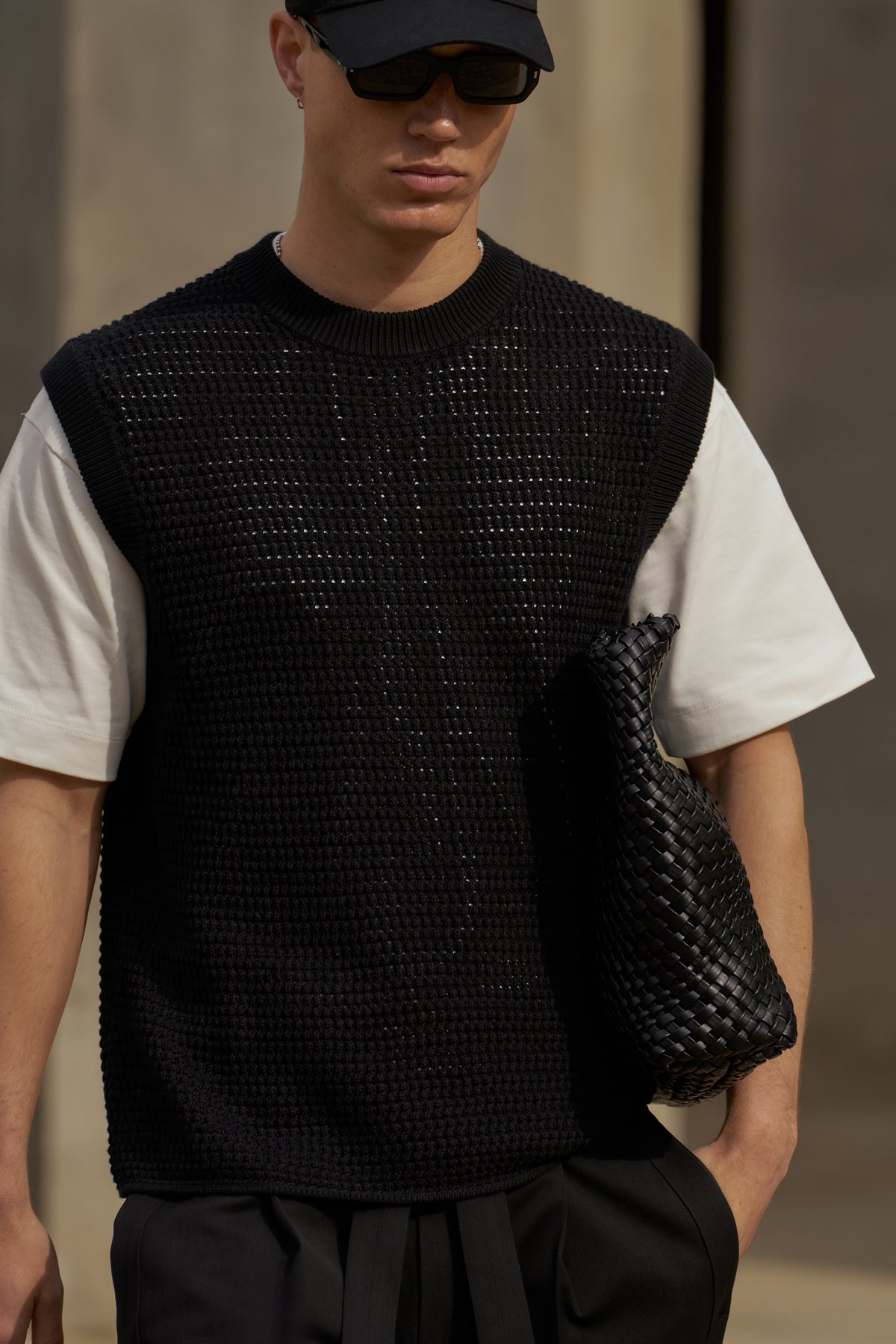 - Relaxed fit crochet vest with dropped shoulder