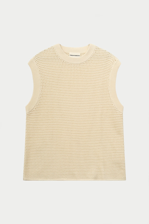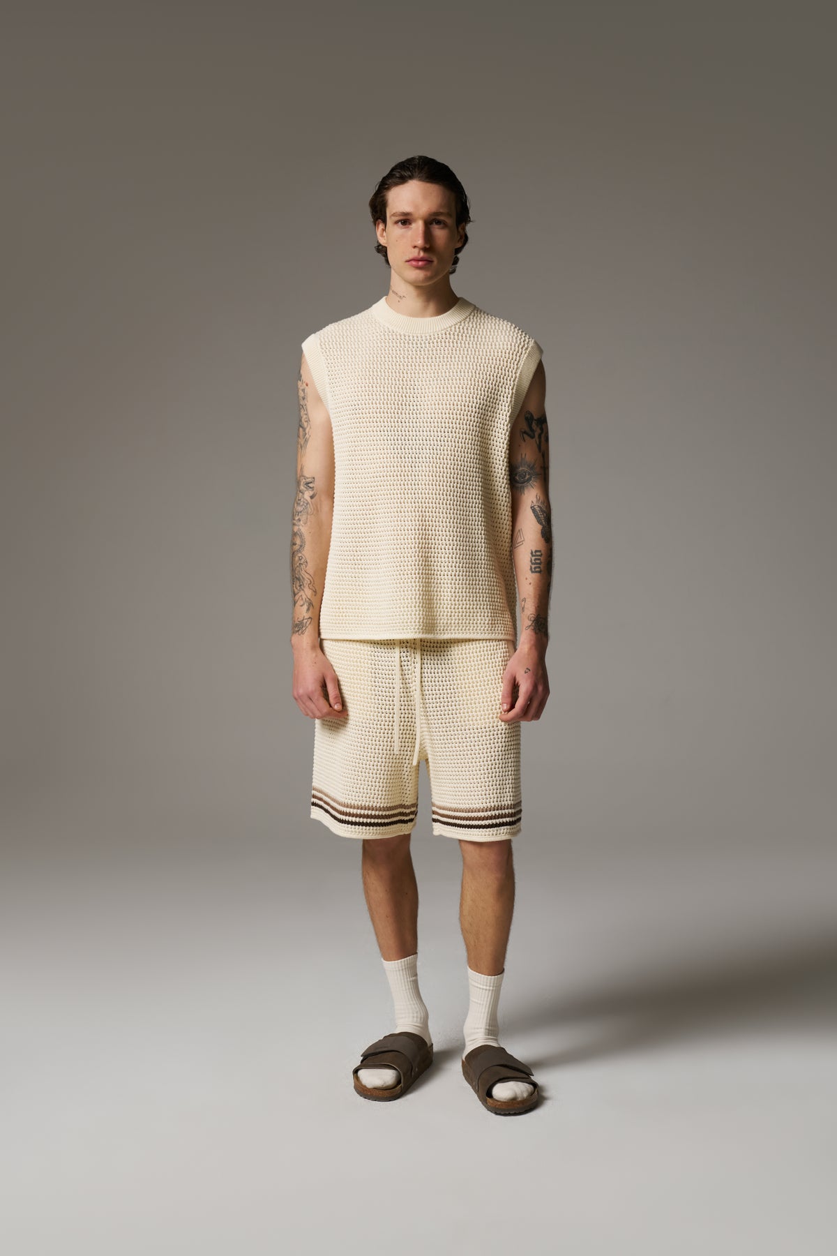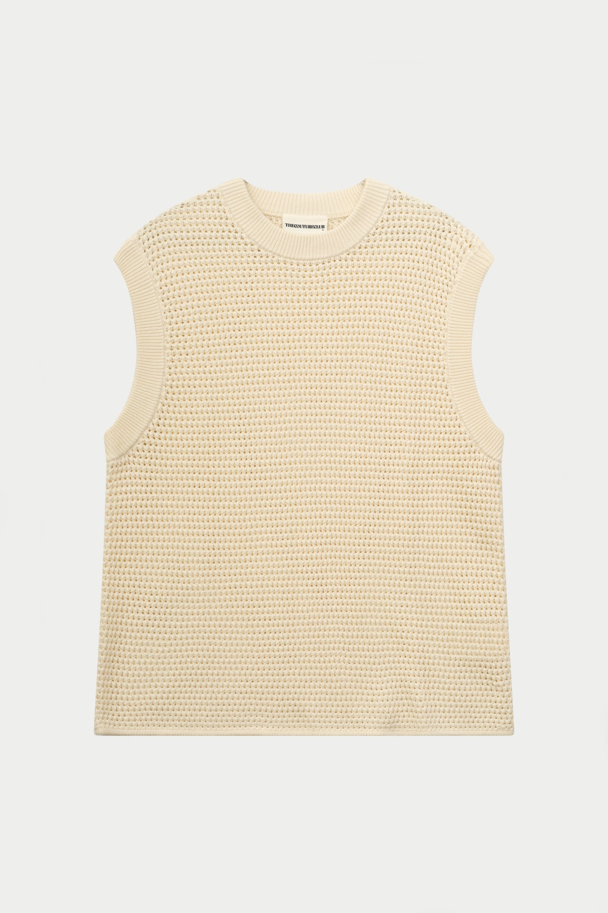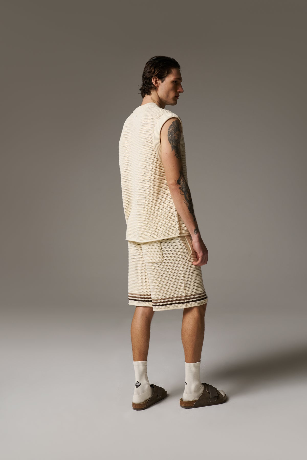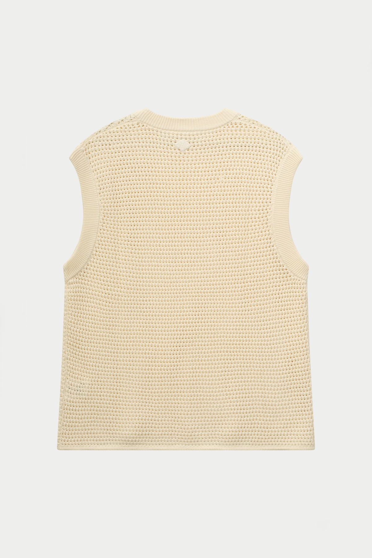STRIPE CROCHET KNIT VEST - OFF WHITE