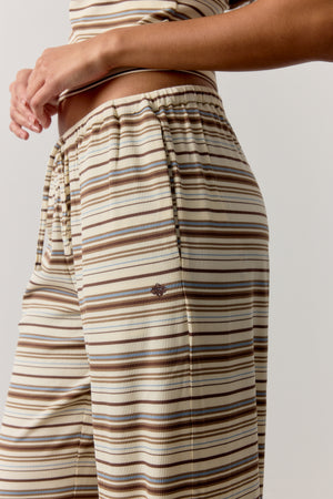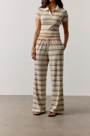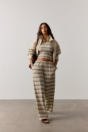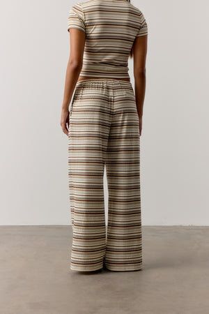 STRIPE WIDE LEG TROUSERS - BEIGE