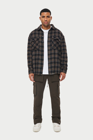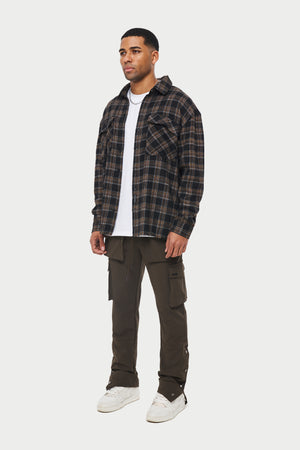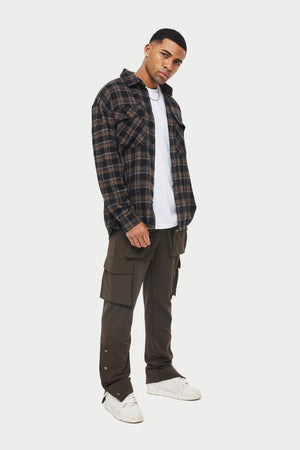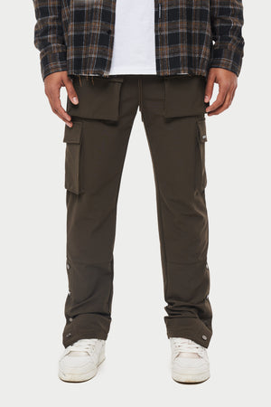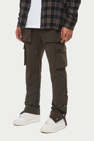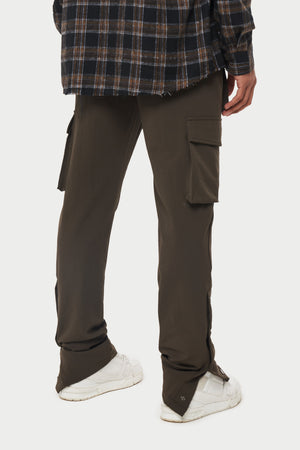 TECHNICAL STRETCH POPPER DETAIL CARGO PANTS - MOCHA