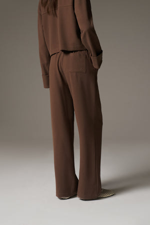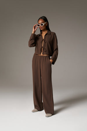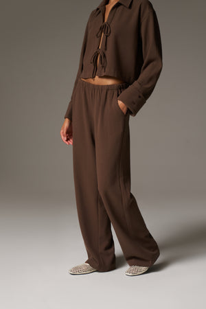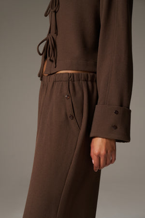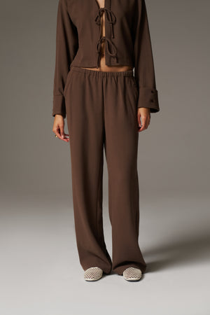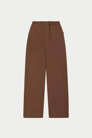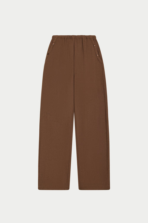 TEXTURED LINEN BUTTON DETAIL TROUSER - BROWN