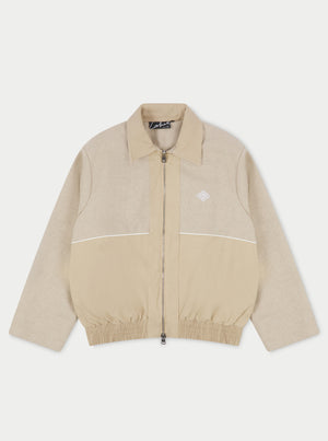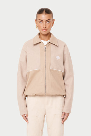 TWEED PANELLED BOMBER JACKET - BEIGE