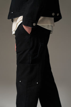 TWILL DOUBLE PATCH TROUSER - WASHED BLACK