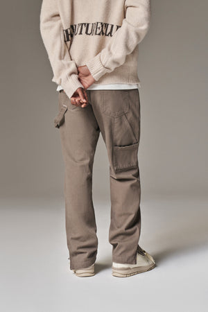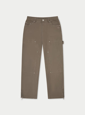 TWILL RIVET DETAIL CARPENTER PANT - BROWN