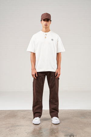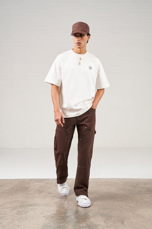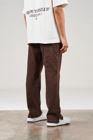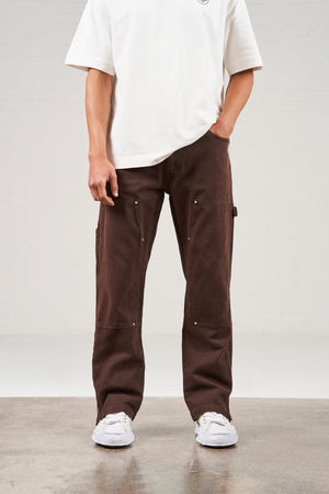 TWILL RIVET DETAIL CARPENTER PANT - DARK BROWN
