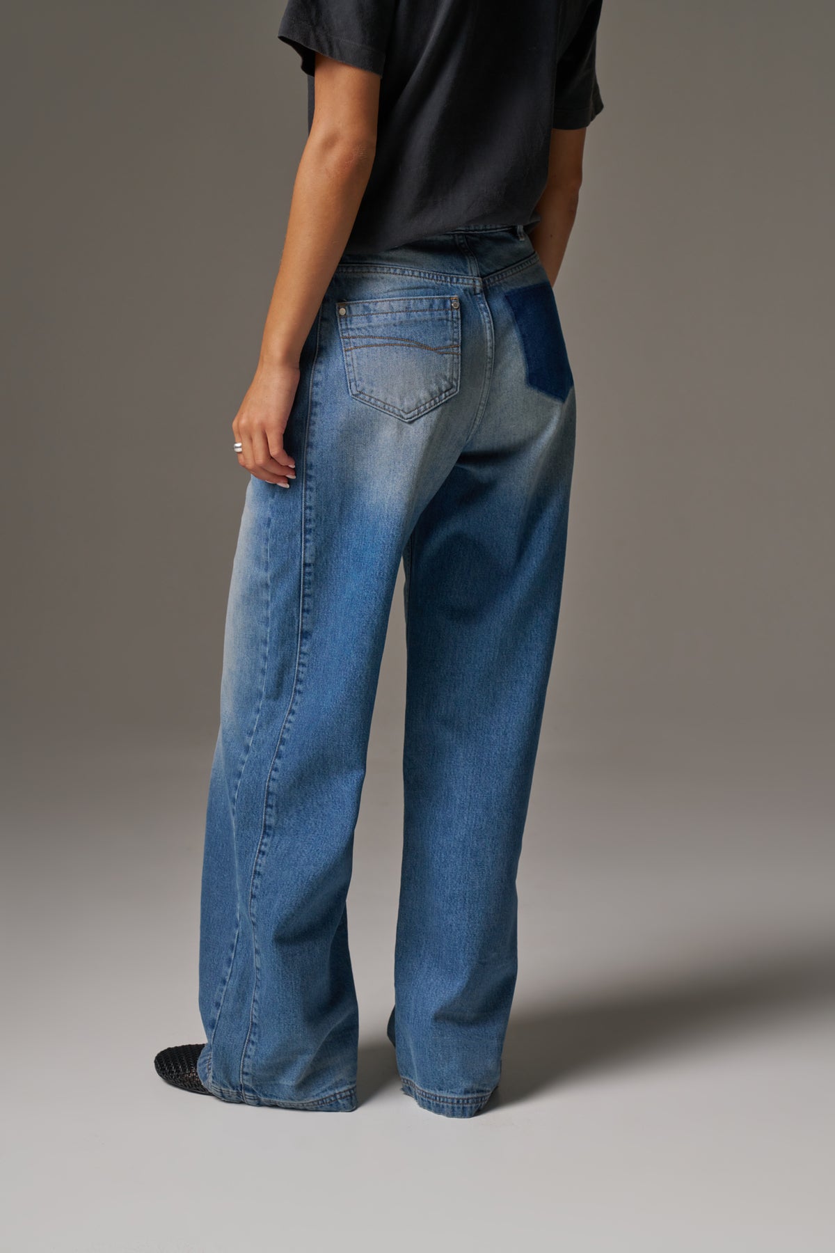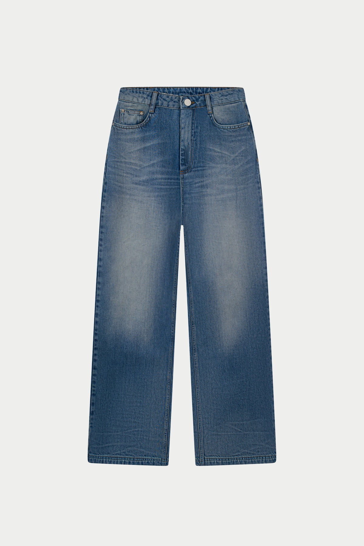 - Mid-rise straight leg denim jeans