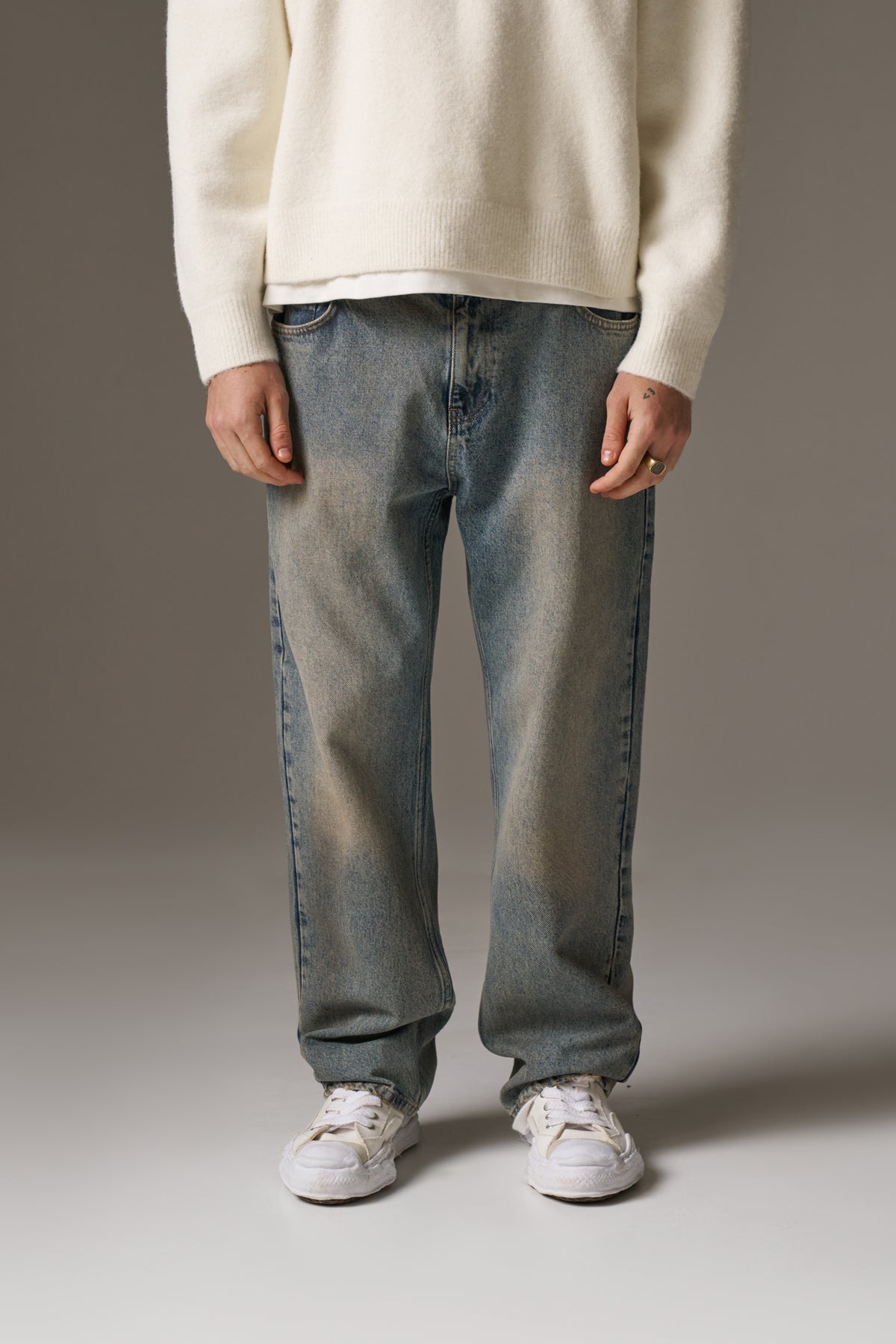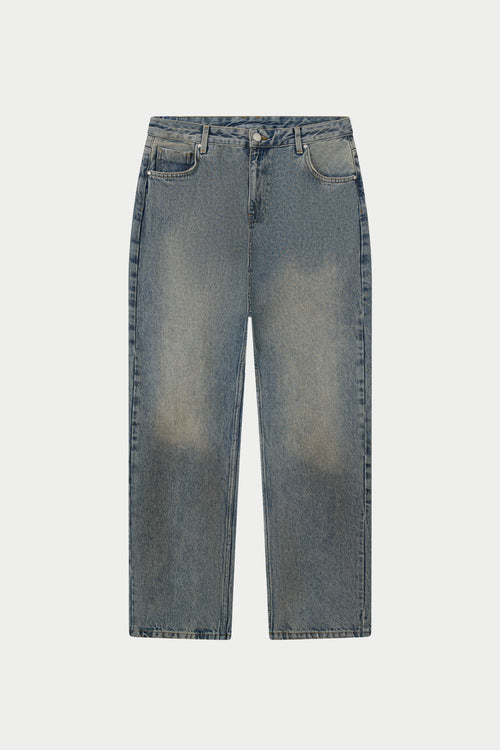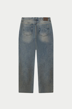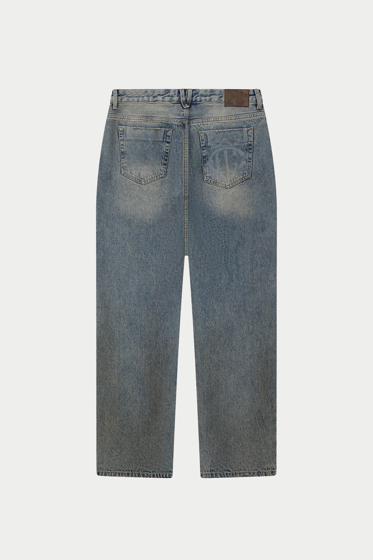 VINTAGE WASHED EMBLEM STRAIGHT LEG JEANS - BLUE WASH