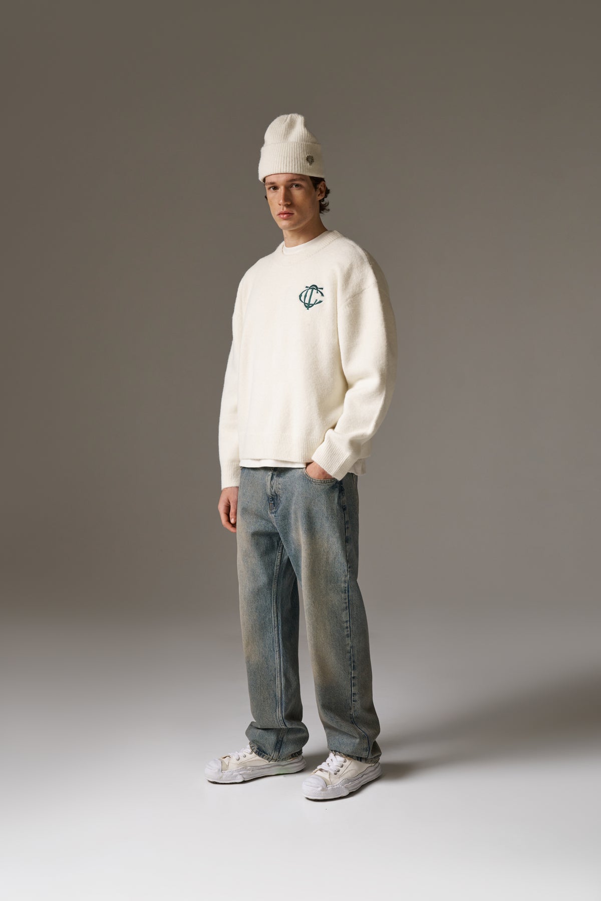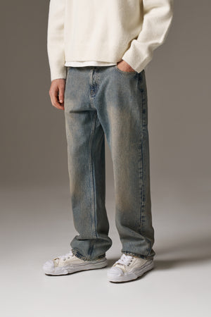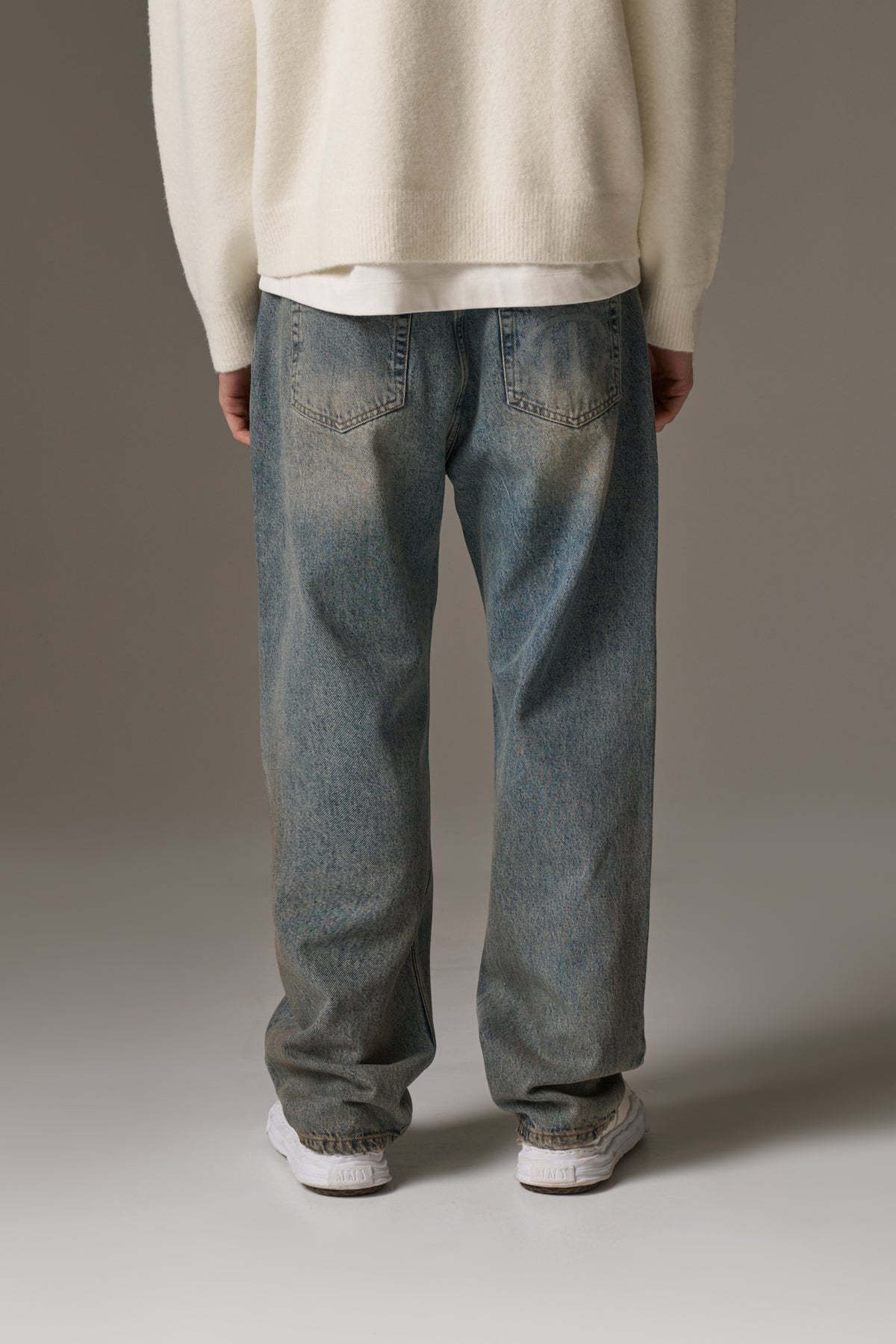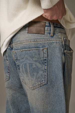 VINTAGE WASHED EMBLEM STRAIGHT LEG JEANS