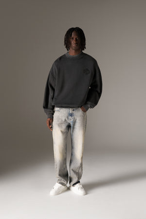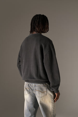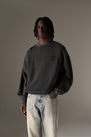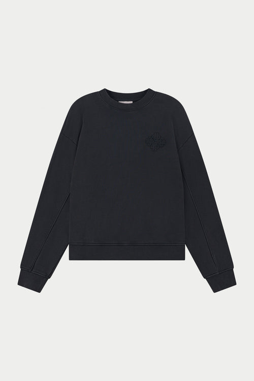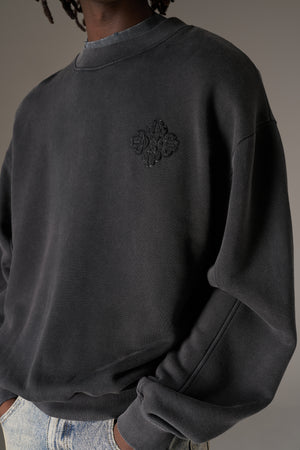 WASHED BORG EMBLEM APPLIQUE CREW - BLACK