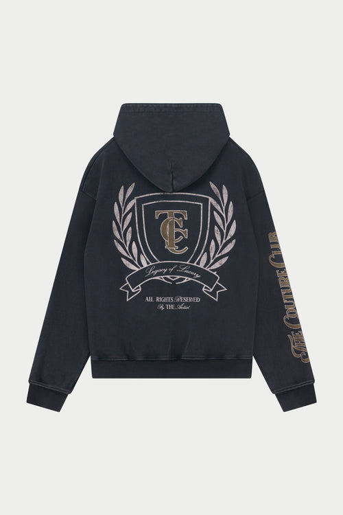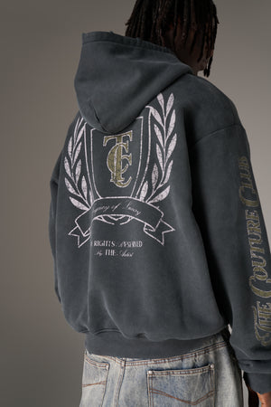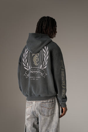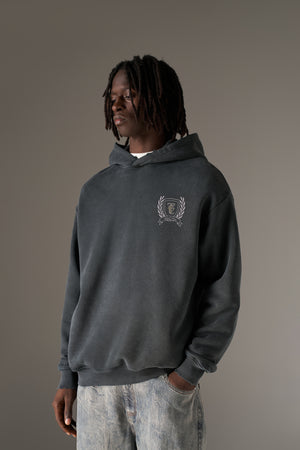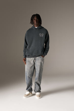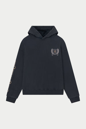WASHED LAUREL VARSITY GRAPHIC HOODIE - BLACK