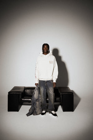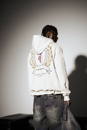 WASHED LAUREL VARSITY GRAPHIC HOODIE - OFF WHITE