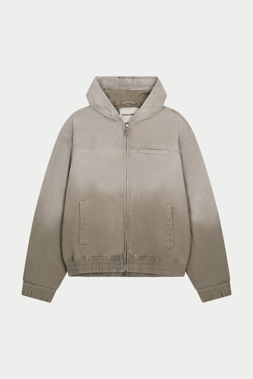 WASHED TWILL HOODED PADDED JACKET - STONE
