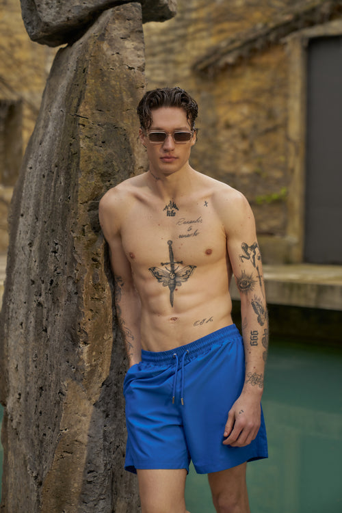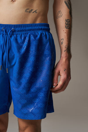 WATER REACTIVE EMBLEM SWIM SHORT - COBALT