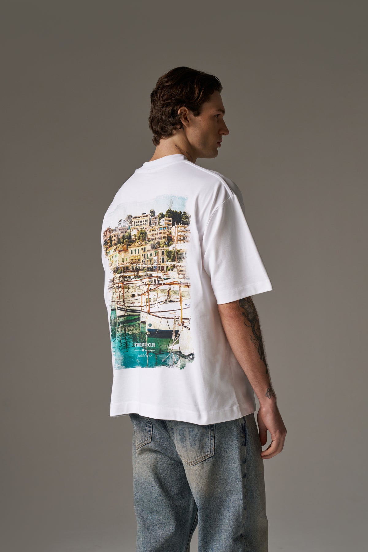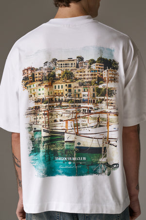 WATERCOLOUR YACHT CLUB PRINTED T-SHIRT - WHITE