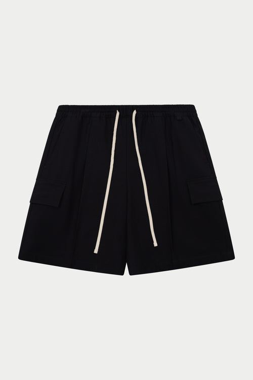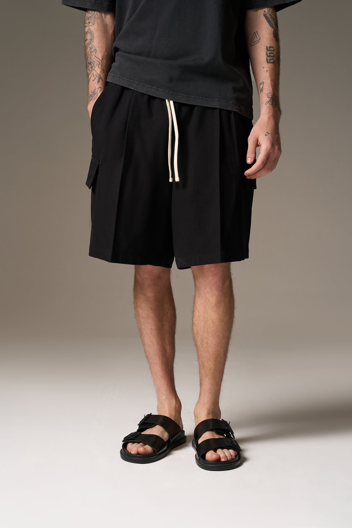 WIDE LEG SIDE POCKET SHORTS - BLACK